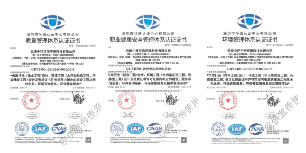 云南中環(huán)正浩環(huán)境科技有限公司成立于2016年12月09日,企業(yè)的經(jīng)營(yíng)范圍為:許可項(xiàng)目:地質(zhì)災(zāi)害治理工程施工;地質(zhì)災(zāi)害治理工程監(jiān)理;地質(zhì)災(zāi)害治理工程勘查;地質(zhì)災(zāi)害治理工程設(shè)計(jì);各類(lèi)工程建設(shè)活動(dòng);地質(zhì)災(zāi)害危險(xiǎn)性評(píng)估;建設(shè)工程勘察;建設(shè)工程設(shè)計(jì)。一般項(xiàng)目:環(huán)保咨詢(xún)服務(wù);生態(tài)資源監(jiān)測(cè);環(huán)境保護(hù)監(jiān)測(cè);固體廢物治理;地質(zhì)災(zāi)害治理服務(wù);土壤污染治理與修復(fù)服務(wù);土壤環(huán)境污染防治服務(wù);水污染治理;水環(huán)境污染防治服務(wù);大氣污染治理;大氣環(huán)境污染防治服務(wù);生態(tài)恢復(fù)及生態(tài)保護(hù)服務(wù);技術(shù)服務(wù)、技術(shù)開(kāi)發(fā)、技術(shù)咨詢(xún)、技術(shù)交流、技術(shù)轉(zhuǎn)讓、技術(shù)推廣;專(zhuān)業(yè)保潔、清洗、消毒服務(wù);環(huán)境保護(hù)專(zhuān)用設(shè)備銷(xiāo)售;環(huán)境監(jiān)測(cè)專(zhuān)用儀器儀表銷(xiāo)售;貨物進(jìn)出口;技術(shù)進(jìn)出口。持有住建部門(mén)頒發(fā)的市政行業(yè)專(zhuān)業(yè)乙級(jí)和環(huán)境工程專(zhuān)項(xiàng)乙級(jí)工程設(shè)計(jì)資質(zhì)證書(shū)、國(guó)家發(fā)改委備案的工程咨詢(xún)單位證書(shū)(備案編號(hào) 9153010MA6K8WRRXR-20)、環(huán)境保護(hù)污染治理資質(zhì)乙級(jí)證書(shū)、環(huán)保管家資質(zhì)證書(shū)、環(huán)境咨詢(xún)認(rèn)證證書(shū)等。