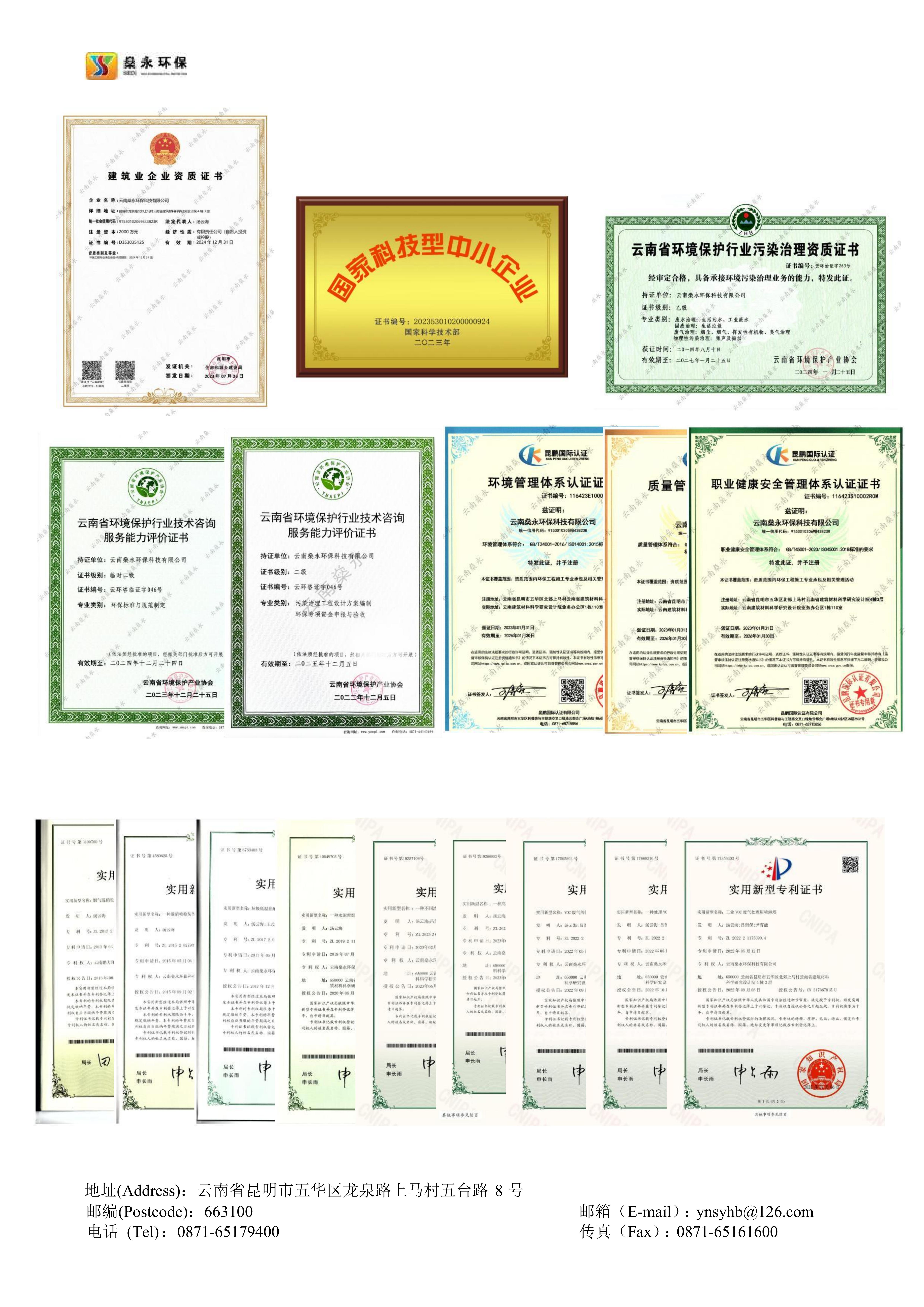 燊永公司堅(jiān)持“創(chuàng)新、協(xié)作、共贏”的價(jià)值觀,以“專業(yè)、專心、專注”為服務(wù)理念,以“求實(shí)、求是、求精”為質(zhì)量宗旨,為客戶提供優(yōu)質(zhì)、高效、貼心的服務(wù)。公司獲得國(guó)家專業(yè)部門頒發(fā)的《環(huán)境工程專業(yè)承包三級(jí)》資質(zhì)、《污染治理乙級(jí)》資質(zhì)、《企業(yè)信用等級(jí)A級(jí)》證書、《云南省科技型中小企業(yè)》認(rèn)定證書、《ISO9001/GBT50430質(zhì)量管理體系》證書、《ISO14001環(huán)境管理體系》證書、《ISO45001職業(yè)健康安全管理體系》證書等多項(xiàng)榮譽(yù)和多項(xiàng)的專利技術(shù)。